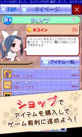プレイヤーは猫を操作してステージをクリアするのが主な目的になります。ステージ中には宝石やメダルが落ちているので獲得しながらクリアを目指します。集めた宝石やメダルは、ショップでアイテムを買うのに使うことができます。アイテムには「帽子」「りぼん」「めがね」があり、自分の猫に、着せかえをすることができます。アイテムを着せることでステージクリアするのに有利になるとともに、アバターとしても楽しめます。
