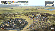 越後の山によって天然の要害を持つ春日山城から、城下町をのぞんだ画面です。山全体が巨大な城郭のような大きな山城になっています。山のふもとには城下町が広がり、プレイヤーの思うままに発展させることができます。 |