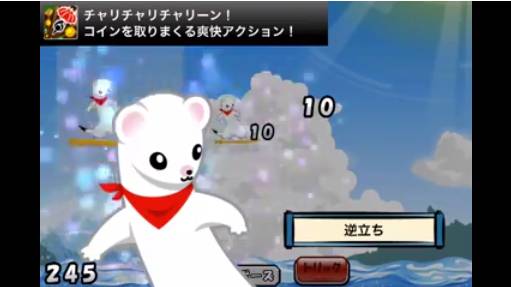 - 華麗にオコジョを水面に着水させると得点ボーナス!逆にバランスを崩した状態で着水するとゲームオーバーになるので気をつけよう!