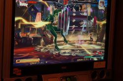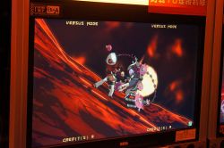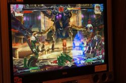 GGXrdのロケテストは,これまで2013年8月と11月にも開催されてきたが,3回目の今回は,新たに「ザトー=ONE」「ベッドマン」が参戦し,計13人のキャラクターが使用可能となった。中でも「ベッドマン」は,シリーズ初登場となる完全な新キャラクターということで,気になっているファンも多いことだろう。