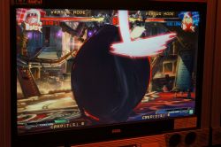 そのほか,第2回のロケテストから実装された新システム“ブリッツシールド”についても軽く触れておこう。ブリッツシールドはテンションゲージを25%消費することで,すべてのキャラクターが繰り出すことのできる,いわゆる“当て身技”のようなもの。コマンドは「HS+いずれかの攻撃ボタンを同時押し」または「