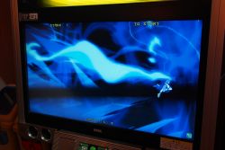 「セガ 秋葉原 1号館」で行われている第3回ロケテストでは,8筐体4セットの対戦台と,1人用専用台1台の,計9筐体が設置されている。初日となった12月6日は,平日でありながら開店と同時に多数のファンが詰めかけていた。