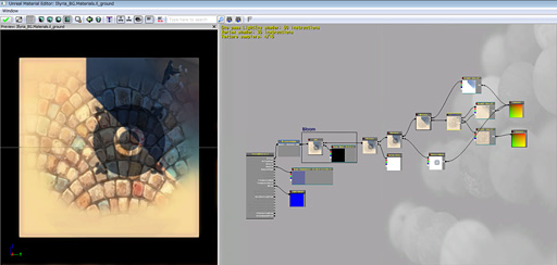 ![]() こちらはUE3のシェーダ調整画面だ。Softimage上で作成されたcgfxシェーダと同じ計算結果となるよう,マテリアルツリーが作成されているのが分かる |