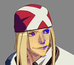 GUILTY GEAR Xrd -SIGN-では,バトルシーンの3Dモデルとカットシーンでの3Dモデルで,頭部は別個にモデリングされている。ただ,いずれのシーンにおいてもポリゴン数に大きな変動はないという。