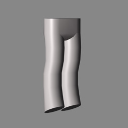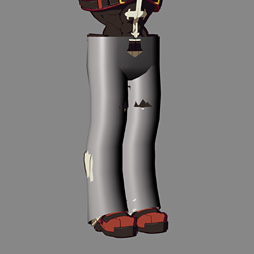 ソルのズボン(=脚部)は,凹凸の与えられた複雑な形状をしているが,陰影はやはり大ざっぱにしてある。ほぼ同サイズの円筒形(=円柱)モデルを用意し,その法線をあらかじめ,ズボンモデルに転写することで,法線の調整を行っているのだ。