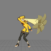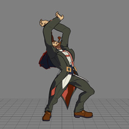 影を操るザトーなどは,技によってはドロリと影に溶ける動きがあるのですが,途中まではザトーのキャラクターモデルを変形させていって,途中から別に用意した「影溶け」エフェクトモデルに差し替えていたりしますね。