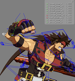 GUILTY GEAR Xrd -SIGN-で登場するキャラクターには,一般的な3Dゲームキャラクターと同様のボーンが仕込まれてはいるが,そのボーンの動かし方や制御の仕方には,かなり高い自由度を与えている。