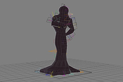 結果,家弓氏はUE3を改造し,ボーンの三軸個別拡大縮小処理に対応させたのだった。さらに,実際の制作段階へ移行するまでの間に,この仕組みを使って手足などを手軽に拡大縮小・伸縮自在に調整できるカスタムインターフェースも制作。かくして,肢体操作においては,このカスタムインターフェースを用いながら手足の拡大縮小・伸縮の調整を行いつつのモーション作成ができるようになったのであった。