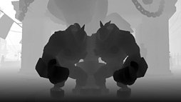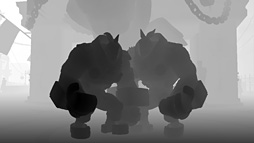 | 深度調整後のキャラクター描画(左)とそのZバッファ(右) | |