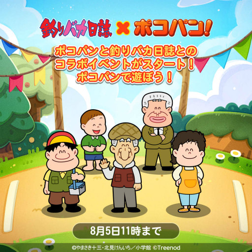 「LINE ポコパン」が漫画『釣りバカ日誌』とコラボレーション!「ハマちゃん」や「スーさん」など、おなじみのキャラクターたちが登場します!ぜひ、コラボレーションをお楽しみください!