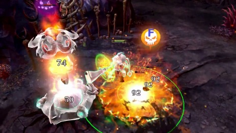 指定位置にかぼちゃ爆弾を生成し、範囲内に物理ダメージ、スローと、束縛の呪いを与える。