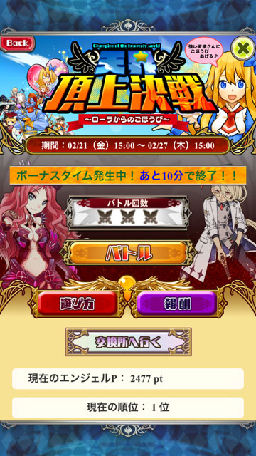 「バトルオブエンジェル」バトルイベントを開催。ランキング上位を目指そう
