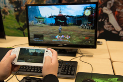 リモートプレイに関しては,やはり画面が小さいため文字は読みづらいかもしれない。と言っても,フォントサイズの変更は可能だし,開かれたUIウィンドウのサイズも背面タッチパッドを使って拡大できるので,プレイヤー側で対応可能だ。プレイ時のラグについては,ジャンプしたときに多少,描画の遅れを認識できる(それもディスプレイと見比べた状態でのこと)くらいで,ラグによって操作感が損なわれることはまったくなかった。なお,チャットはソフトウェアキーボードを使うことになる。