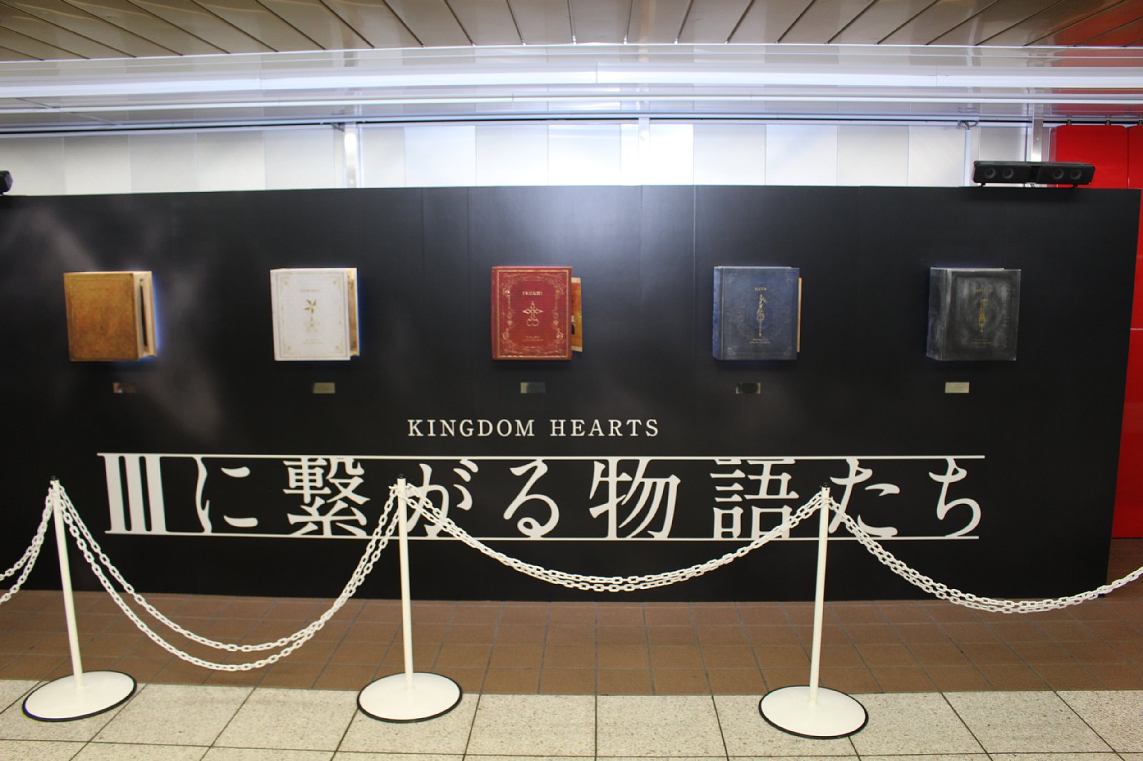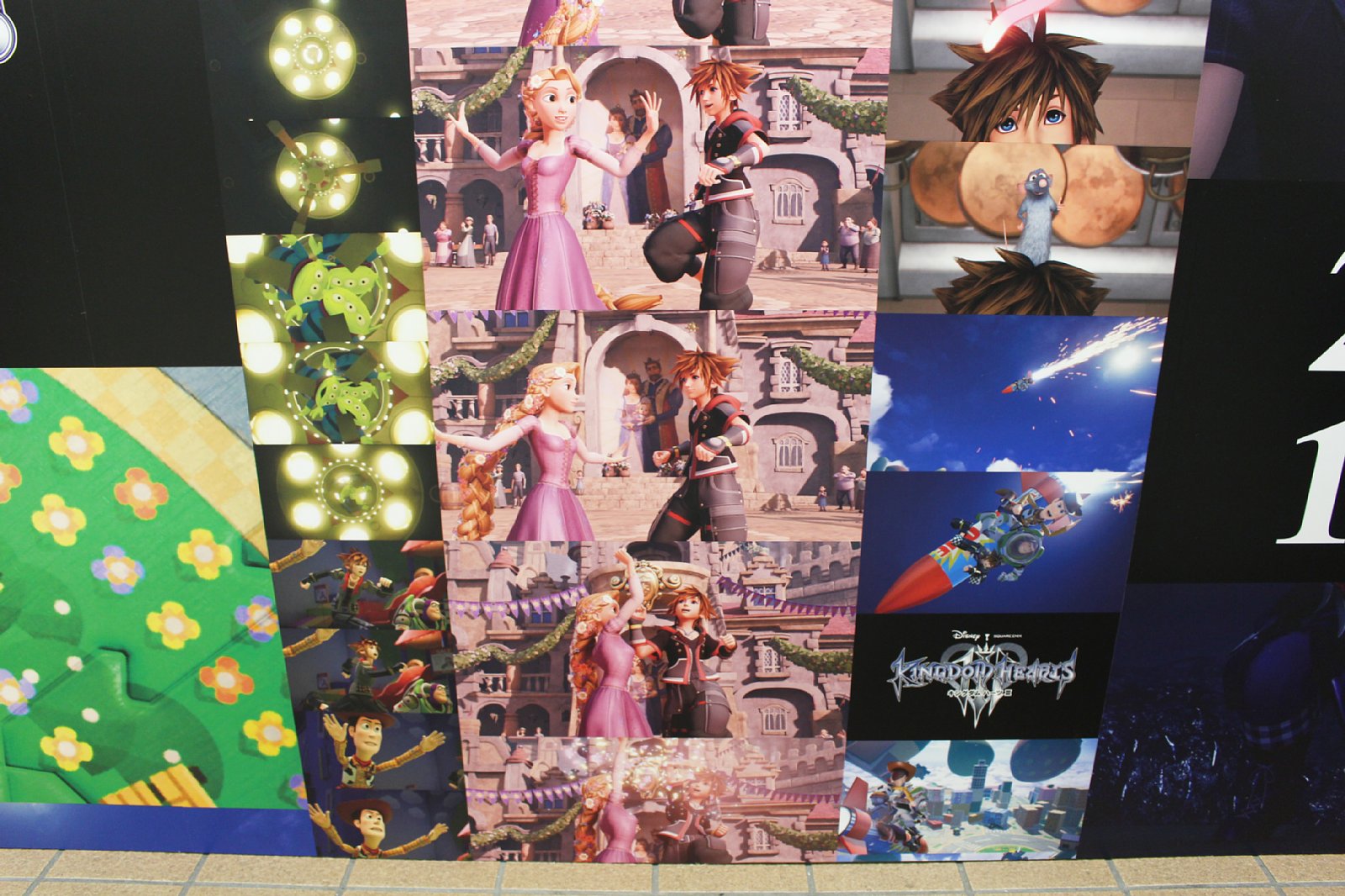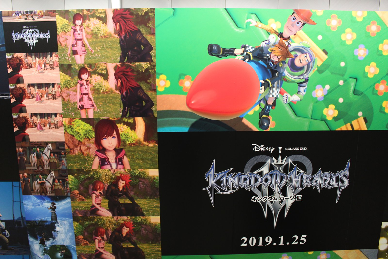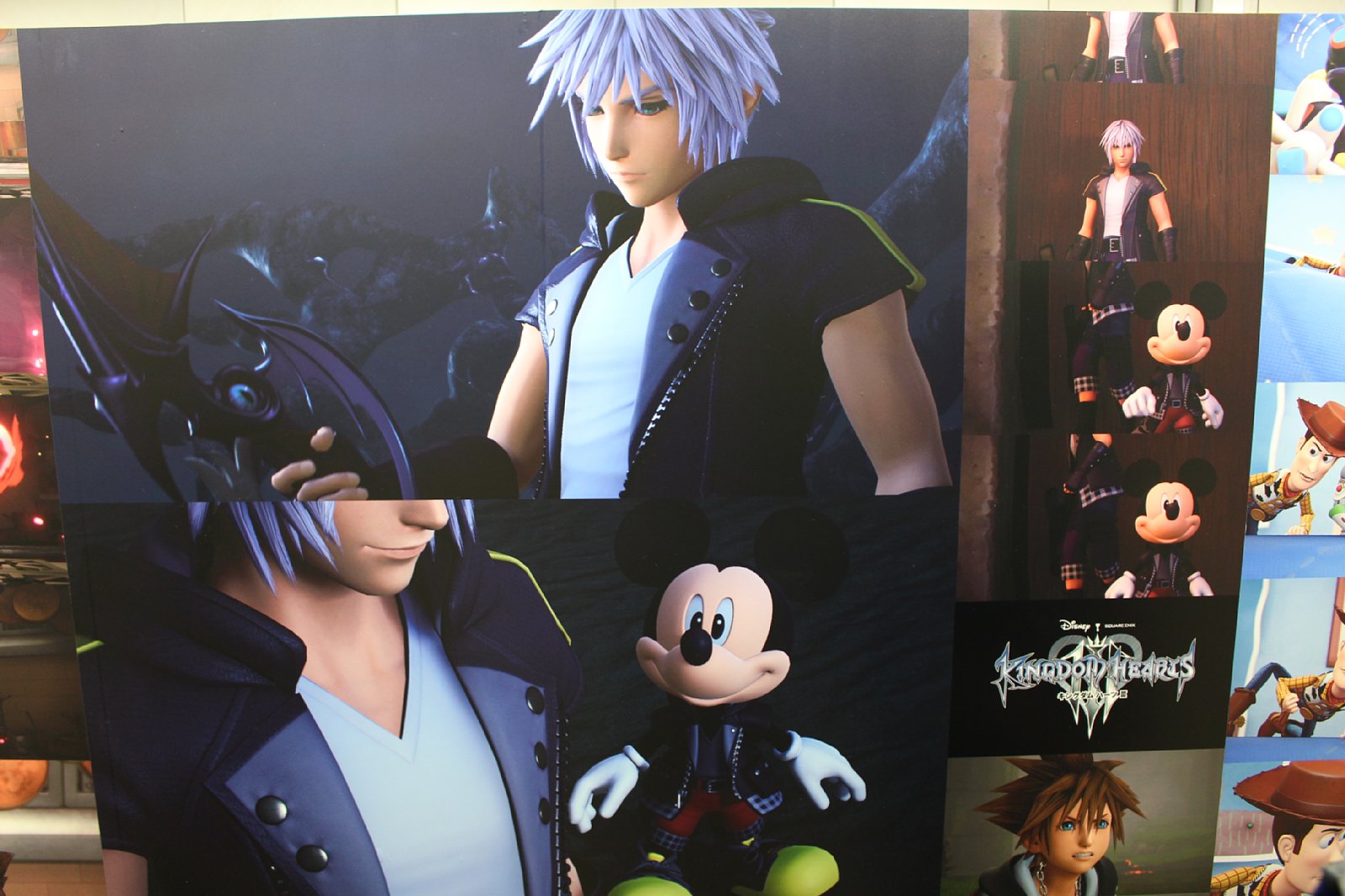 「KINGDOM HEARTS III」発売日決定記念「IIIにつながる物語たち スペシャルボード」が新宿で公開。絵本のページを模したリーフレットも配布