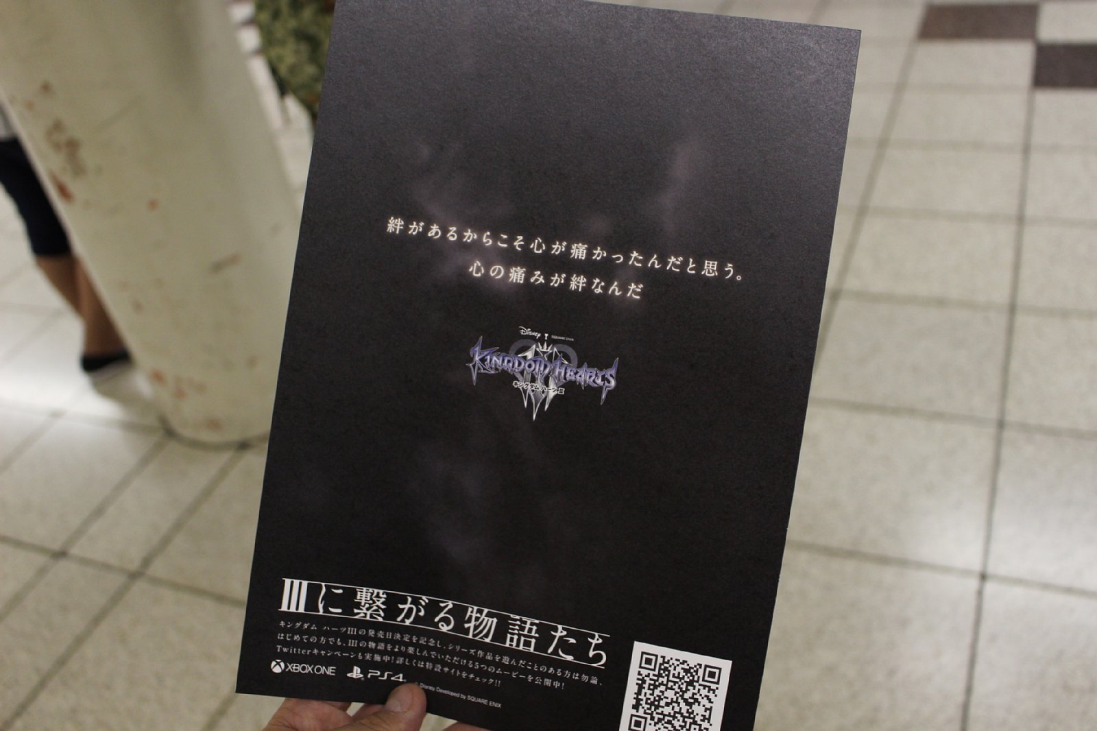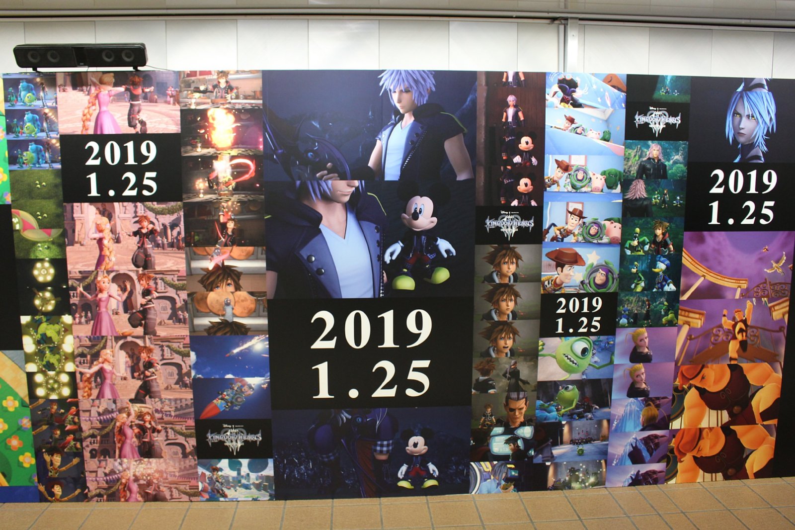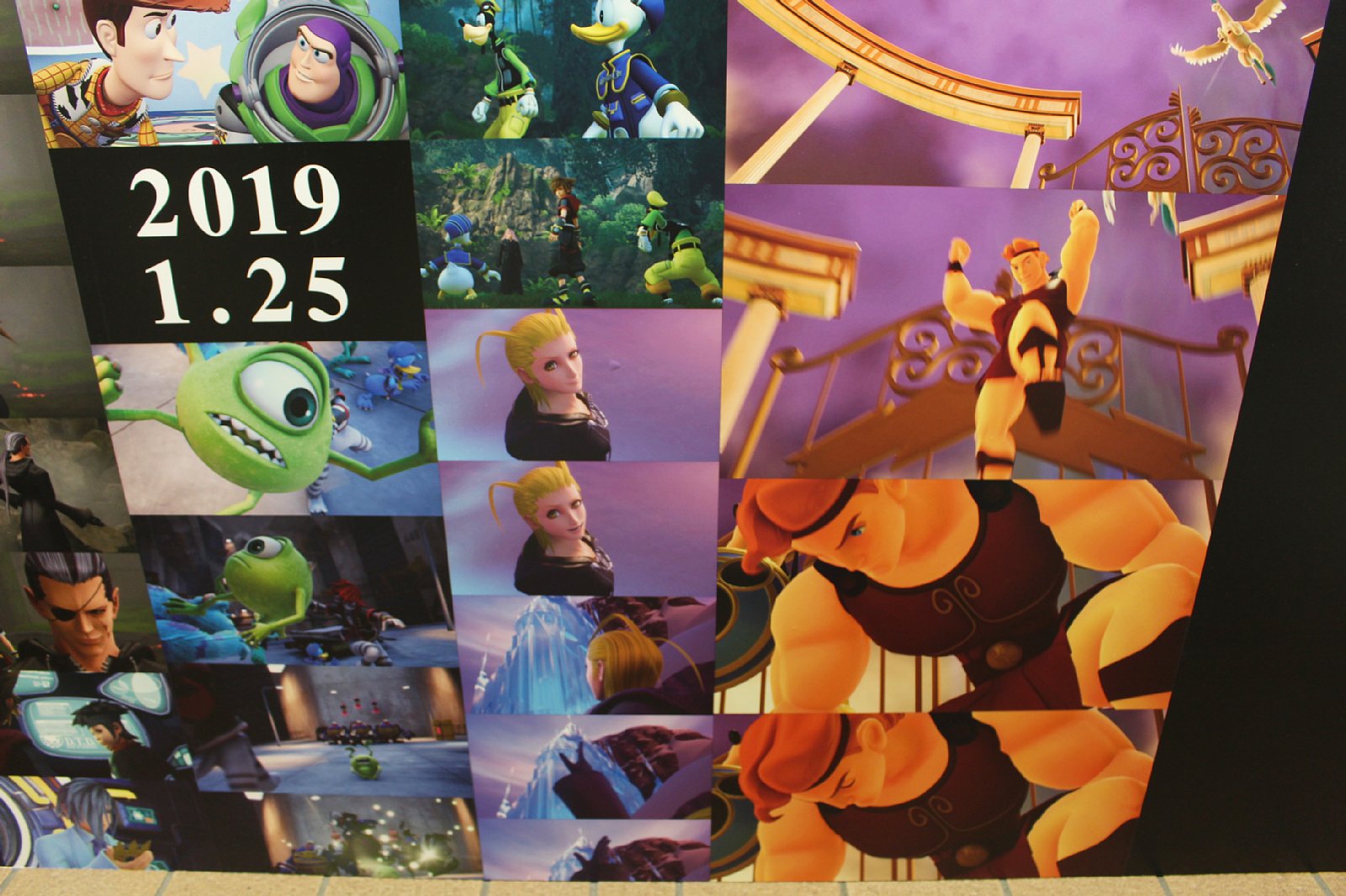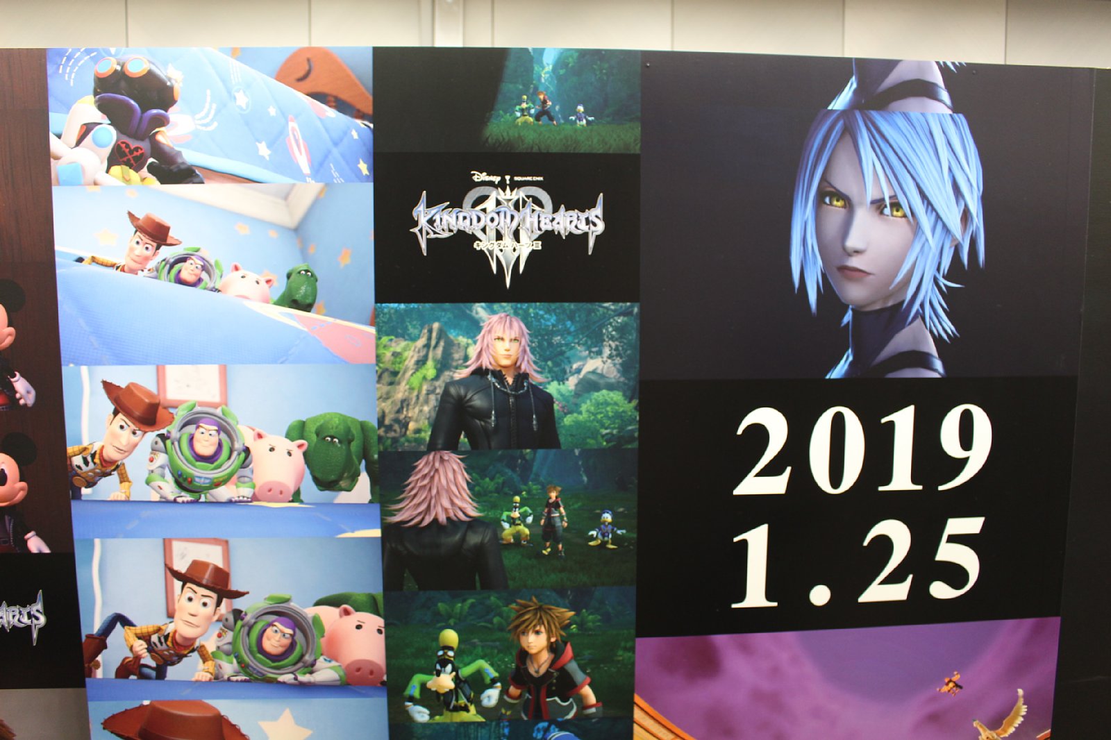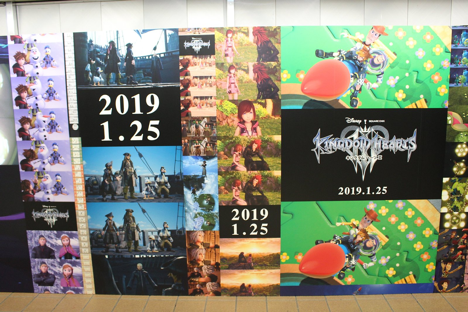 「KINGDOM HEARTS III」発売日決定記念「IIIにつながる物語たち スペシャルボード」が新宿で公開。絵本のページを模したリーフレットも配布