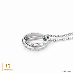 仲間たちの強い絆を、外れることのない2本のリングで表現しました。ソラ、リク、カイリのそれぞれの象徴的なセリフとマークをデザイン。メッセージの横には、イメージカラーの宝石を留めています。キャラクターのリングを2本選び、お好きな組み合わせが楽しめるネックレスです。