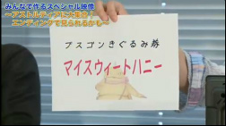 ![]() 「みんなで作るスペシャル映像」の撮影前には,なんとプスゴン着ぐるみ引き替えの呪文を公開。「マイスウィートハニー」と入力すると,プスゴンの着ぐるみをゲットできる |