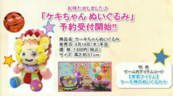 ![]() ケキちゃんのぬいぐるみの予約受付もスタート。ゲームで使えるアイテムコードも付いてくる |