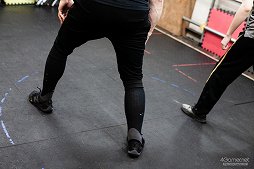 オリエンテーションが終わると,通常の初級レッスンへの体験参加となる。今回はスケジュールの関係で中・上級者向けのレッスンが先に行われていたので,まずはそちらを見学させてもらった。
