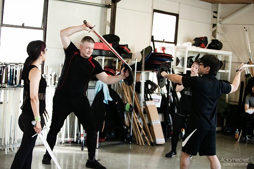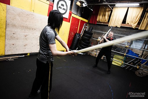 剣を(画面の中だが)見ることの多いゲーマーという人種でも,剣の持ち方や構え,足さばきを意識することはまずない。こうした基本的なことを習うだけでも,新鮮な体験だ。