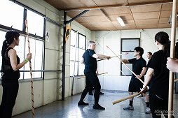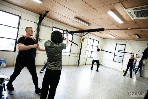 イベントなどでは,全身を甲冑に包んで登場することが多いので,甲冑で戦う「アーマードバトル」の団体として認識している人もいるかもしれないが,実は甲冑なしの軽装で戦う「ライトバトル」も扱っている。今回はこれを習いにいってみようというわけだ。