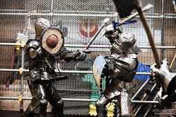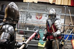 キャッスル・ティンタジェルで扱っている剣術は,主に14〜15世紀のドイツのものだ。ノイズ氏によれば,鎧を着るアーマードバトルと,軽装のライトバトルの剣術は少し違うものだという。