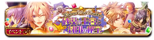 また本日より王宮と魔神が登場するオトメイトの人気乙女ゲーム「デザート・キングダム」が、セフィロトの新イベント、「砂漠の王宮と封印の秘宝〜Wishes of Magic Kingdom〜 」へ参戦いたします。