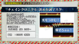 さらにチェンクロの新グッズとして,シュザをイメージした香水,ドールTシャツ,アルカナアイマスク,決めセリフマスクが公開。これらのアイテムは,本日12月25日20:00に受注が開始される。