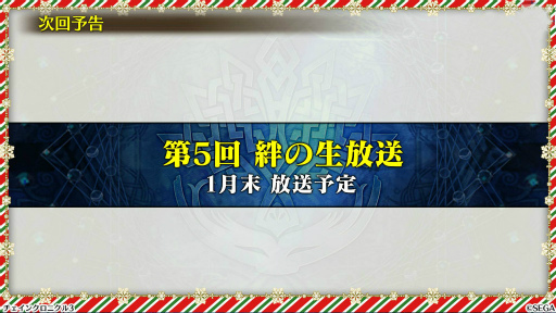 最後に次回予告として,1月末に「第5回 絆の生放送」が配信されることが発表された。年末年始にかけての盛りだくさんの内容はもちろん,今後の動向にも注目だ。