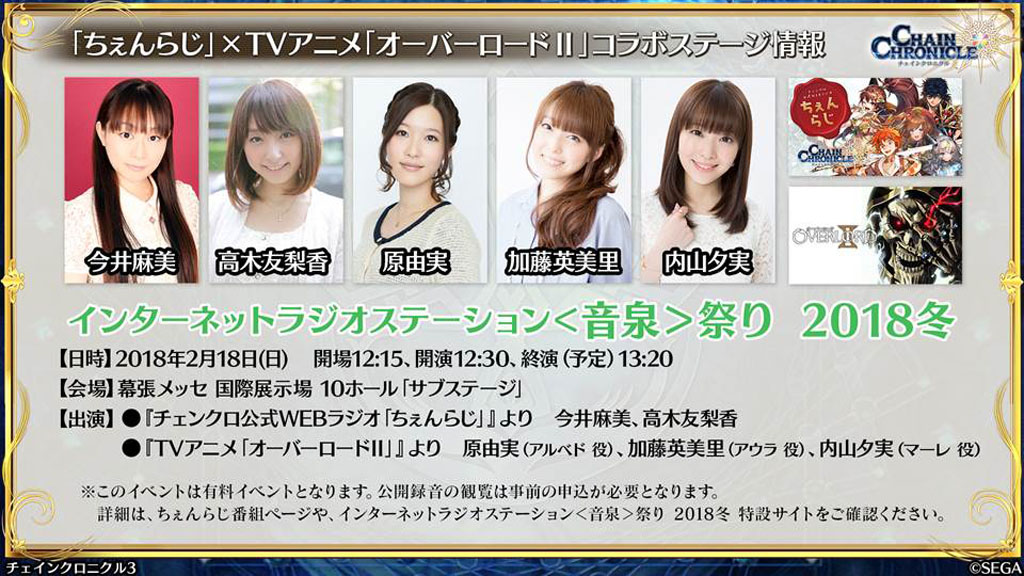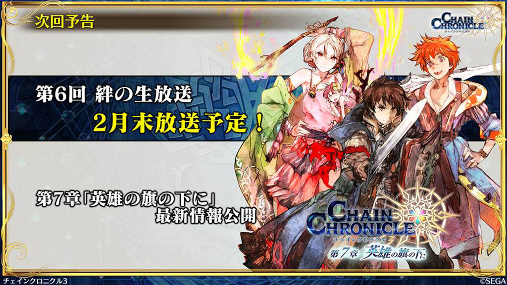 1月の「チェンクロ 義勇軍 絆の生放送!」。オーバーロードIIのコラボの続報,2月のアップデート&魔神スカクリルの情報などが公開