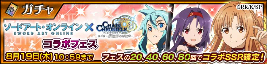 「チェンクロ」,アニメ“ソードアート・オンライン”とのコラボが本日スタート