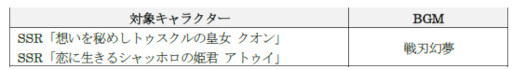 なお、コラボフェス第1弾では、ガチャ30回と65回でSSR「恋に生きるシャッホロの姫君 アトゥイ」、50回と80回でSSR「想いを秘めしトゥスクルの皇女 クオン」をもれなくプレゼントします。