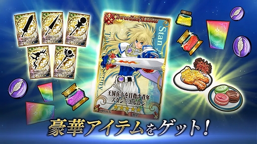 さらに、メダルを集めて豪華報酬と交換できる“『テイルズ オブ』シリーズコラボ&9.9周年記念!メダルハントイベント”を開催! 今回のメダルハントイベントでは、SSR「王国兵士を目指す青年スタン・エルロン(CV:関智一)」を報酬として迎え入れることができます。