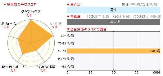 グラフィックス サウンド 快適さ/運営 熱中度/ストーリー ボリューム 5 5 2 3 3
