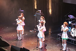 続いて登場したのは,妖精帝國の「黒」とは正反対の「白」で統一されたコスチュームに身を包んだμ's from ラブライブの面々。「革命ですね?神様!」では,会場全体が,「水色」「ショキングピンク」「バイオレット」「緑」「山吹色」と,メンバー個々のイメージカラーのケミカルライトで埋め尽くされた。MCを挟んだあとは「ライブ用スペシャルメドレー」を披露。メンバーが1人ずつステージで楽曲を歌い上げ,ステージを締めくくった。