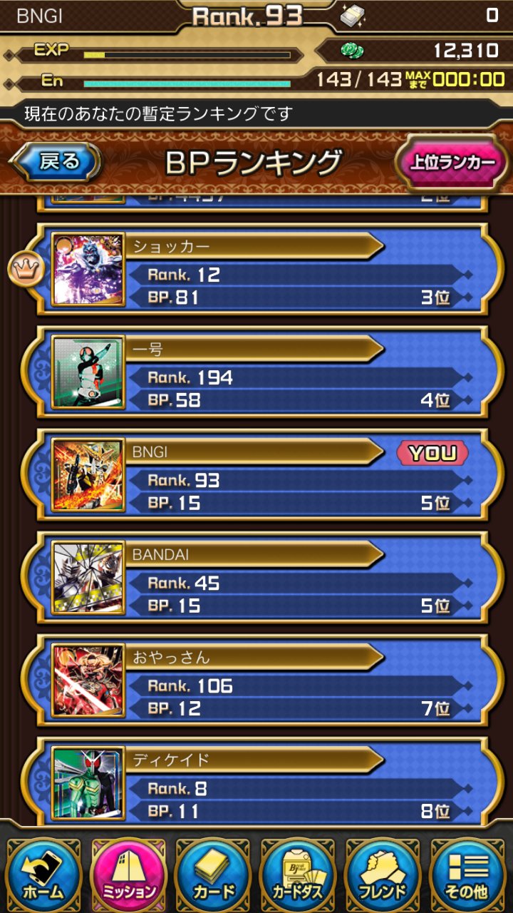 「仮面ライダー ブレイクジョーカー」グループ戦「第8回BJランキング」開催中