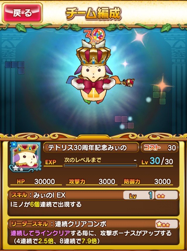 「テトリスモンスター」に「テトリス30周年記念みぃの」が期間限定で登場