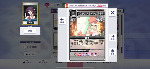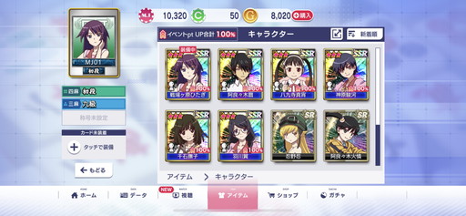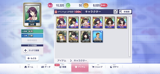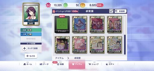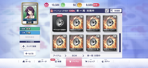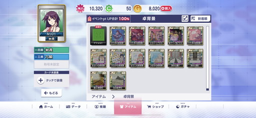 イベントptを集めていくと全4種の卓背景,全6種のEX背景,全3種の「SPキャラ」,そして1種のアガリ演出を獲得できる。