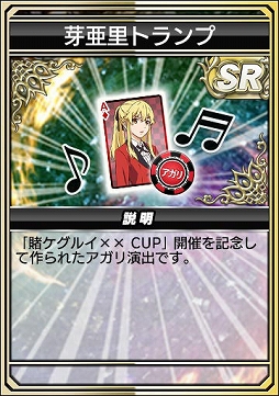 大会に参加し、様々な条件を満たすことで、TVアニメ『賭ケグルイ××』の演出をイメージしたアガリ演出や卓背景アイテムなど様々な限定アイテムが貰えます。