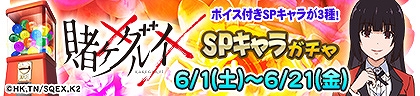 進化型SPキャラクター「蛇喰夢子」や「桃喰綺羅莉」など、TVアニメ『賭ケグルイ××』をイメージしたSPキャラ、アガリ演出、卓背景、EX背景、EX枠などコラボアイテム50種が期間限定で登場します。