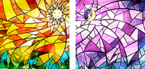 「太陽のステンドグラス背景」「月のステンドグラス背景」など、全9種のEX背景が登場します。