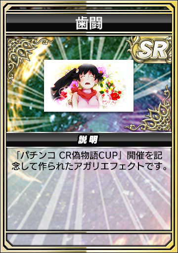 進化型SPキャラ(SSR)「斧乃木余接」のほか、『パチンコ CR偽物語』をイメージしたアガリ演出、EX背景、卓背景などがイベントpt特典として獲得できます。
