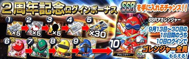 「スーパー戦隊 バトベースDX」,2周年記念ログインボーナスを実施
