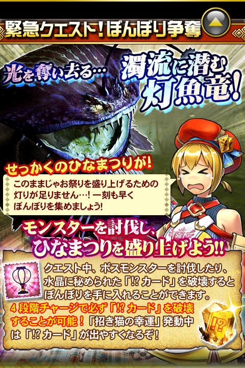 「モンハン 大狩猟クエスト」で灯魚竜「チャナガブル」が登場する緊急クエスト