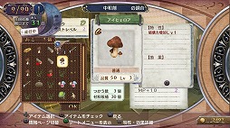 アイテム同士を組み合わせて新しいアイテムを作り出す調合システム。本作では,「メルルのアトリエ」の調合システムを採用することで,特性を合成したり,高コストの特性を追加したりできるようになり,やり込み甲斐がアップしている。