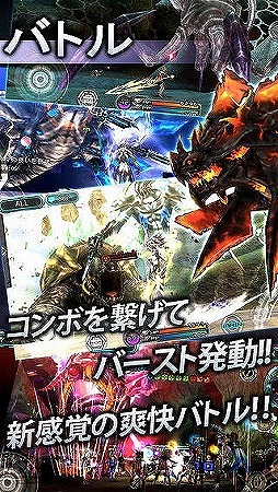 タイミングを合わせてタッチパネルをタップすることで発動する連続攻撃や、敵を倒すことで蓄積される「バーストポイント」を開放して一定時間強力になるバーストシステムなど、爽快感のある戦闘をハイクオリティな3Dグラフィックで体感できます。