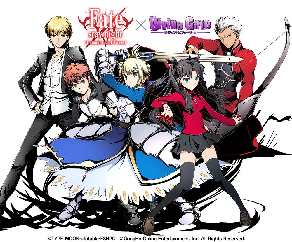 「ディバインゲート」で5月15日から「Fate/stay night」コラボが復活&「英雄王:ギルガメッシュ」が参戦。降臨/ゲリラボスの新キャラも公開