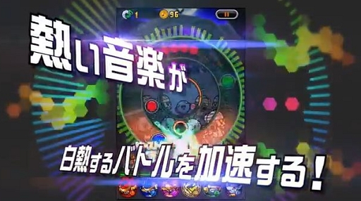 リズムパートでリズムアクションに挑戦。流れるマーカーをリズムに合わせてタップ、フリック、長押し!刻んだリズムが攻撃力として蓄えられる。 |