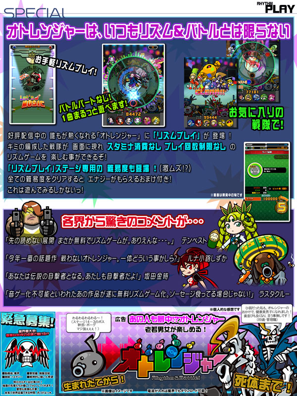 「オトレンジャー」,スタミナ不要で楽しめる「リズムプレイ」モードが登場