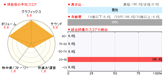 グラフィックス サウンド 快適さ/運営 熱中度/ストーリー ボリューム 5 5 1 1 5